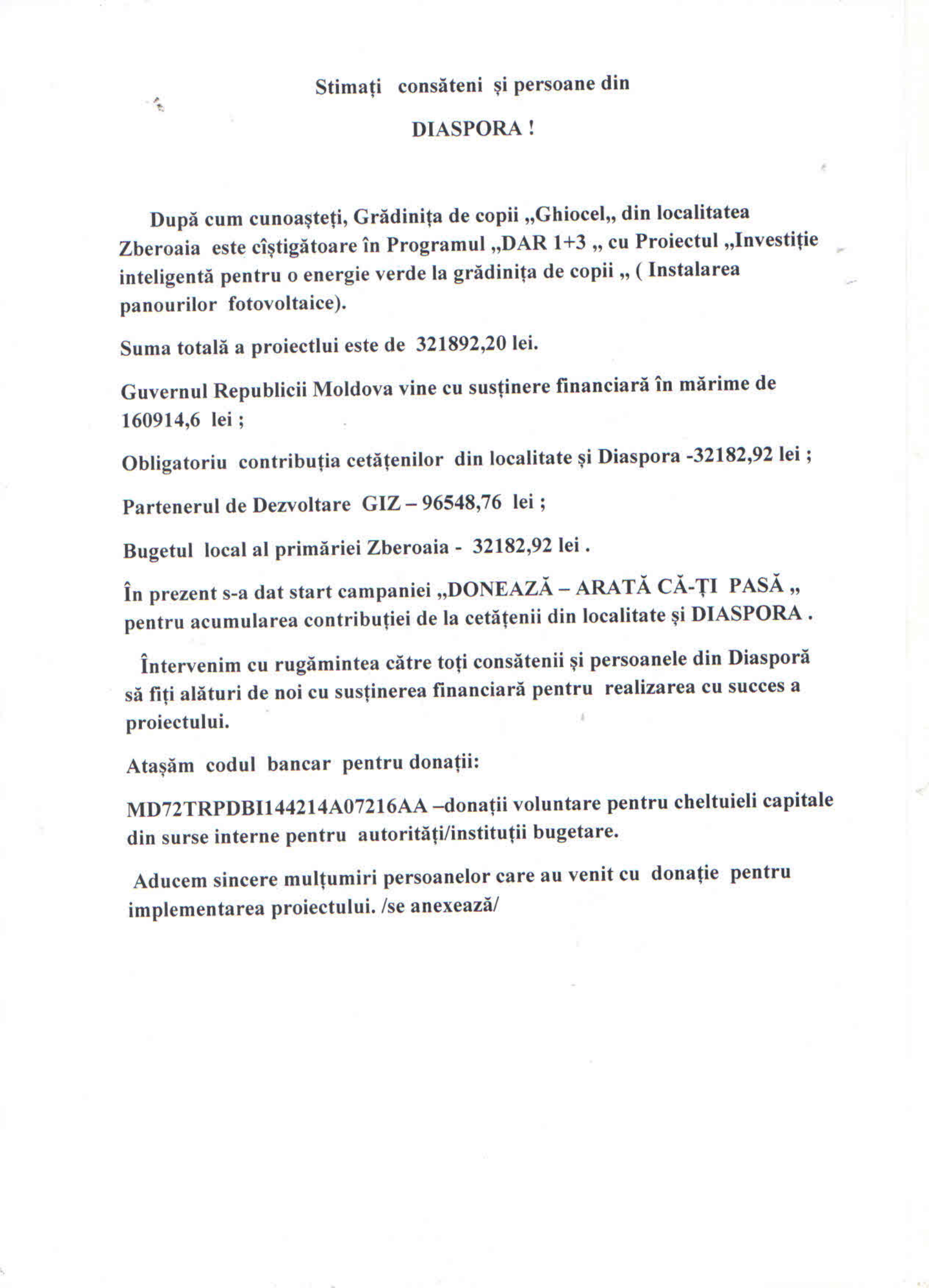 Proiect instalarea panourilor fotovoltaice la grădinița „Ghiocel”