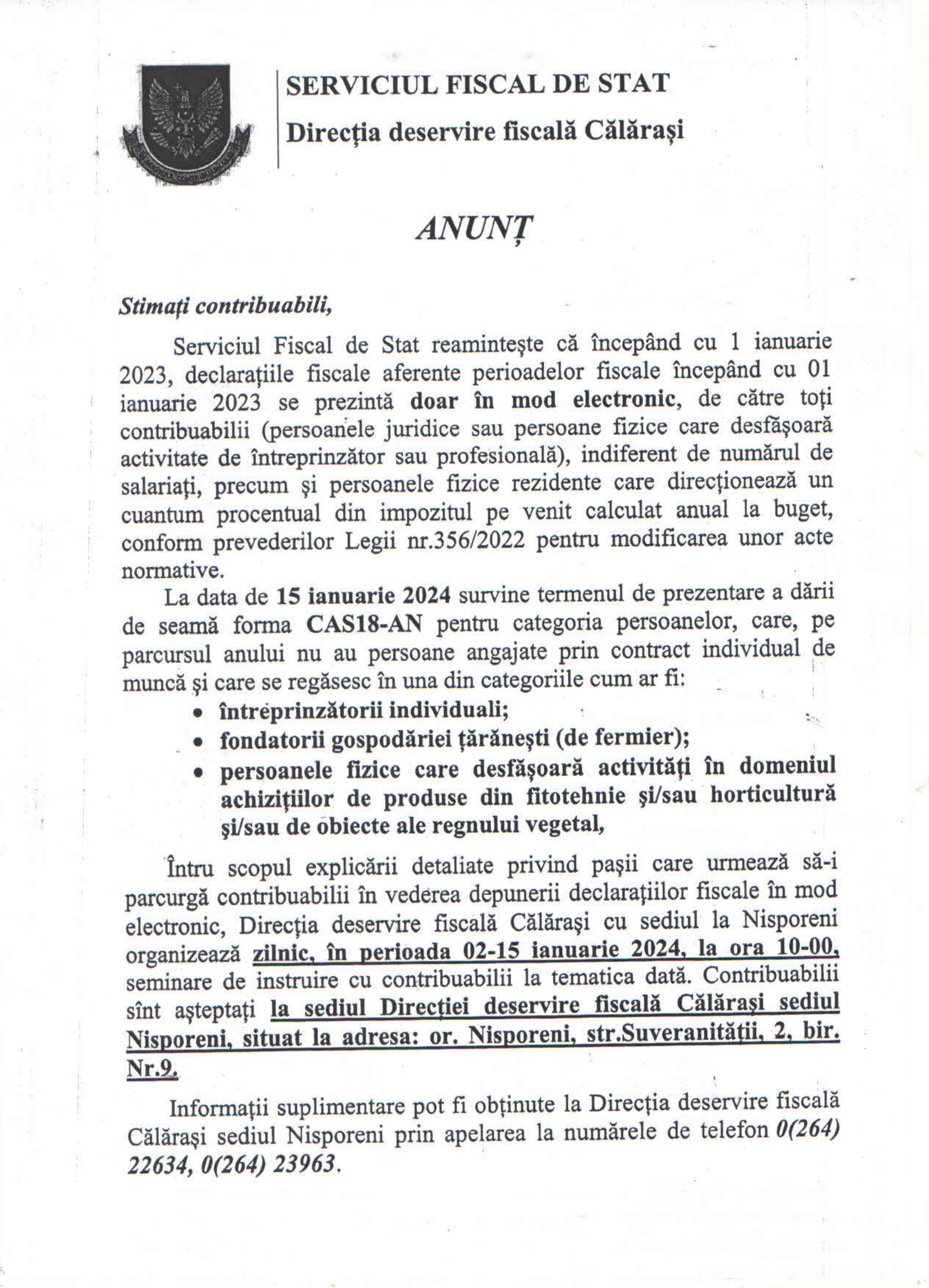 Anunț pentru contribuabili